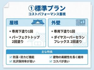 秦野市の地域性を考慮した塗料を用いた、屋根外壁塗装工事の2つのプランをおすすめしております。