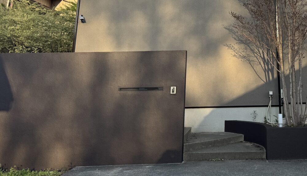 こちらのお客様は、外壁とアクセントとなる塀の色を2色コーディネートされたいとのことで、グレージュ系の外壁塗装色をお選びいただきました。