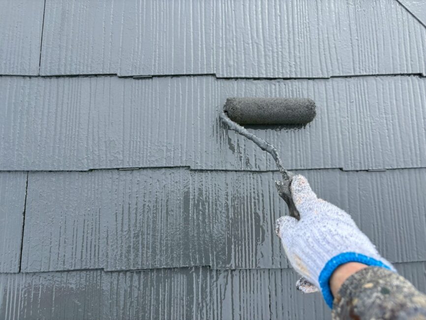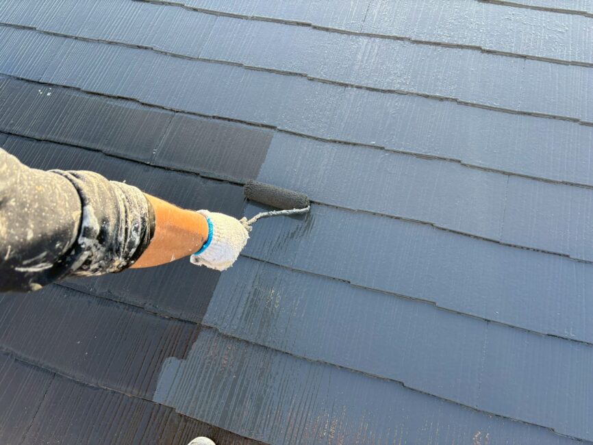 屋根塗装では、雨水の排出経路を確保するためのタスペーサー挿入や、塗膜を密着させる下塗りなど、基本工程を確実に重ねていきます。